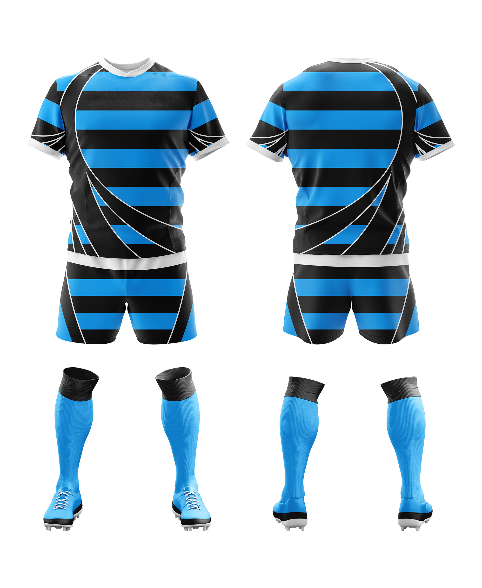 Our kits include everything you need to compete — from rugby jerseys and shorts to optional warm-ups, socks, and team gear — all made from high-performance fabrics tailored for toughness and flexibility.